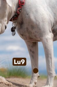 Gleiche Stelle – direkt hinter dem Innenknöchel der Hinterpfote.
