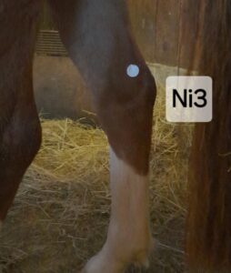 • Beim Pferd am Hinterbein innen, vor und unter dem Griffelbeinköpfchen.
